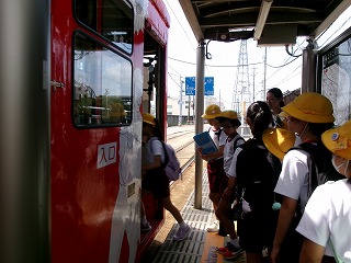 万葉の時代から港町として発展してきた高岡、特に整備された伏木外港への意識を高めと理解を深めるため、みなと見学会が行われました。海上交通である船について学ぶとともに、陸上交通であり地域の足を支える万葉線についても、乗車することでその大切さを学びました。