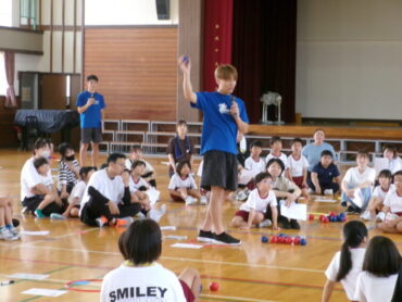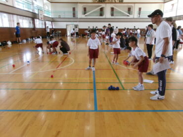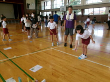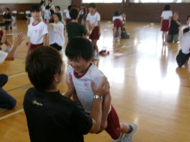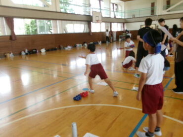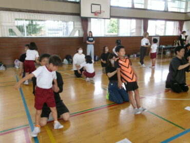 悟空Jr.アスリートスクールから講師の先生をお招きして、体育館で3年生の親子活動を行いました。