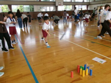 次に、モルック、ボッチャ、ビアポンの3つの競技を、グループに分かれてローテーションで楽しみました。子供たちは、講師の先生の説明を聞いてすぐにルールを理解し、楽しみながら取り組んでいました。