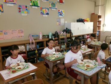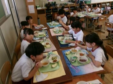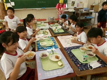 子供たちは赤色のご飯にびっくりしたようですが、「食べてみるとおいしかった」という声が聞かれました。かたかご煮は、ご飯によく合っておいしかったです。野菜の旨味が出ていました。元気が出る給食を食べて、学習発表会を頑張りましょう!
