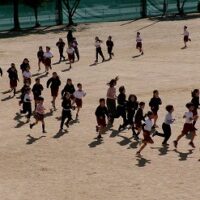 長休みの時間に、たくさんの子供たちがベストタイムに向けて自主的に練習に参加しています。自分の記録を高めようと頑張っていますね!