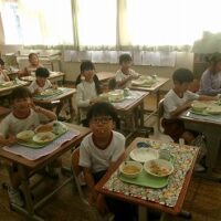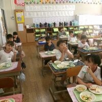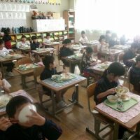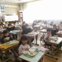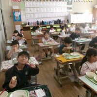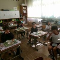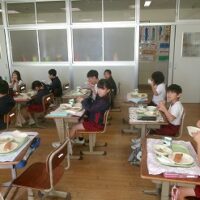 今日のメニューは、米粉入りパン、牛乳、豚肉のジャンロー、ボイル野菜、とうもろこしのスープでした。給食の時間に給食隊から「豚肉はどんなときに食べると、よいと思いますか。」と放送がありました。正解は、「疲れているとき」だそうです。