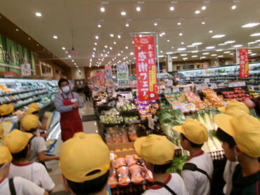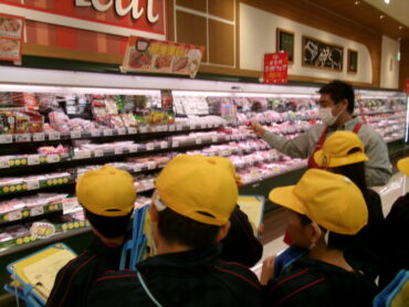 3年生の社会科でスーパーマーケットについて学習をしています。その中で、「スーパーマーケットの工夫をもっと知りたい!」と考え、アルビス姫野店に校外学習に行ってきました。