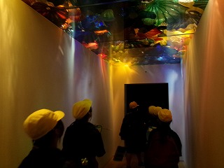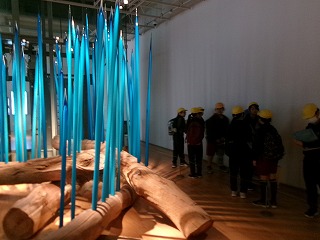 富山市ガラス美術館では、海外の新聞で富山市を代表する観光地として紹介された建物や、一つ一つ工夫を凝らして作られたガラス作品を堪能しました。みんな、色とりどりの作品や、見る角度によって色が変わる作品等、様々なガラス作品に見入っていました。