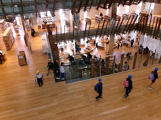 富山市ガラス美術館では、海外の新聞で富山市を代表する観光地として紹介された建物や、一つ一つ工夫を凝らして作られたガラス作品を堪能しました。みんな、色とりどりの作品や、見る角度によって色が変わる作品等、様々なガラス作品に見入っていました。
