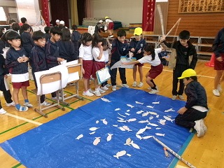 2025.11.11 5年生 全校 11/11(火) ボランティア活動(5年生) 5年生は総合的な活動の時間に「レッツボランティア活動」を学習しています。今日は全校児童を体育館や5年教室に招いて、万葉かるたやストラックアウト、黒板アート等のコーナーを用意し、それぞれの場所で楽しんでもらいました。今日までに準備やリハーサル、改善点の洗い出し等、たくさんのことをしてきました。 他学年の子供たちに楽しんでもらえて、5年生は嬉しそうでした。今後はお世話になった方を招待して集会を開いたり、校内でできるボランティア活動を行う予定です。