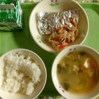 今日の献立は、ご飯、牛乳、さばのホイル焼き、おすわい、とうふとわかめのみそ汁でした。今日の給食に登場した「お酢合い」は、富山県の家庭に伝わる郷土料理です。お酢合いは、大根や人参をせん切りにしたものを甘酢で合えて、なじませて食べる料理で、「日本書紀」にも登場する「まなす」と同じものです。「お酢和え(おすあえ)」が、「お酢合い(おすあい)」→「おすわい」と少しずつなまることで今の名前になったそうです。