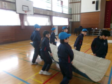 3年生の体育では、先週から跳び箱の学習をしています。準備運動の後、跳び箱、踏切板、マットなどを協力しながら運びました。安全に気を付けながら皆で準備したり片付けたりすることも、だんだん上手になってきました。