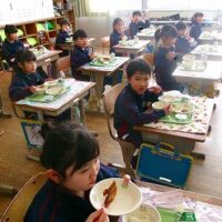 わたしたちは、普段の食事で、海や陸で育った大切な命をいただいています。様々な生き物が暮らす環境を大切に守っていくことが、わたしたちの豊かな食事につながっています。また、日本は他国に比べ「食料自給率」が低い国です。そこで今日の給食では、わたしたちが住む富山県、高岡市の海や陸でとれた食材を多く取り入れたそうです。