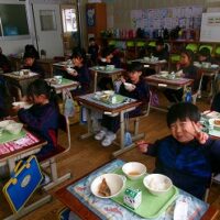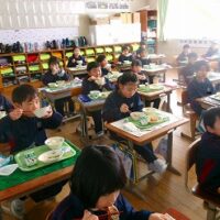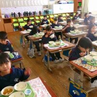 わたしたちは、普段の食事で、海や陸で育った大切な命をいただいています。様々な生き物が暮らす環境を大切に守っていくことが、わたしたちの豊かな食事につながっています。また、日本は他国に比べ「食料自給率」が低い国です。そこで今日の給食では、わたしたちが住む富山県、高岡市の海や陸でとれた食材を多く取り入れたそうです。