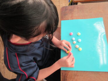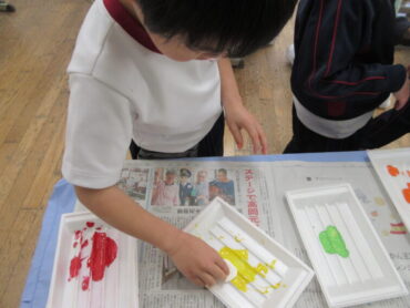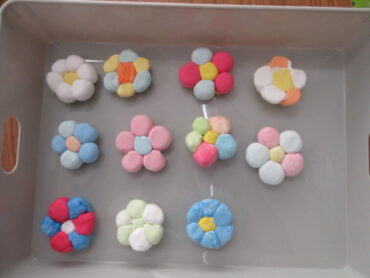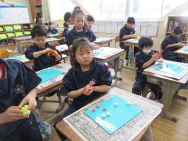 1年生は、卒業を祝う会に向けてプレゼントづくりに励んでいます。紙粘土に色を付けて花びらをつくります。5、6枚合わせて花の形にしてからマグネットを埋め込みます。「どんな色にしようかな」「プレゼントだから丁寧につくろう」とお世話になった6年生の顔を思い浮かべながら、一生懸命つくりました。6年生さんへの感謝の気持ちを込めたプレゼント、喜んでもらえるとよいですね。
