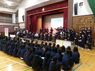 3年生は歌とダンスを披露しました。6年生のことを考えて子供たちが作詞した歌と、得意なダンスで感謝の気持ちを表現していました。
