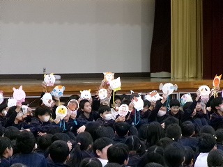 2年生からはメダル型の招待状が贈られました。一つ一つデザインが違う、個性豊かな作品でした。送る相手のことを考えて、動物の顔を描いたそうです。