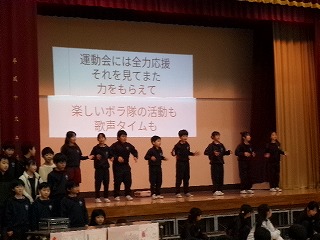 4年生は「鉄腕アトム」の合奏とダンスで入退場の気分を盛り上げてくれました。会場からは自然と手拍子が起こっていました。